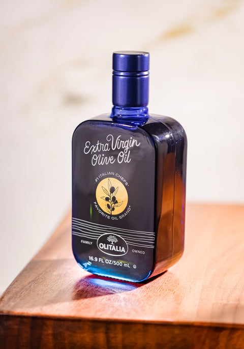 As bold and timeless as the Mediterranean itself, our deep blue hue is rooted in the tradition of the official tasting glasses of olive oil experts to embody our family's passion for balance, tradition, and culinary excellence – a way of life worth bottling.